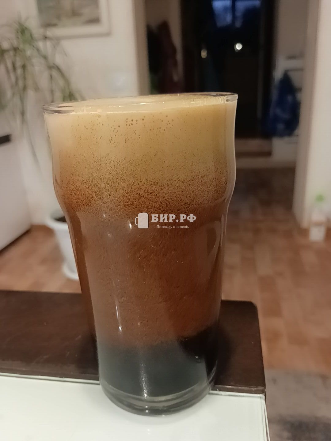 Ну чтож, прошло полгода после варки, думаю достаточная выдержка. Пиво по итогу получилось "густым", полнотелый с сильным кофейным вкусом и шоколадно-карамелным ароматом. Пиво довольно горькое, но с ним работает правило трёх глотков: 1) горько-кофейно-хмелевой вкус с лёгкой, еле заметной сладостью. 2) хмелевая горечь уходит, остаётся только кофейная горечь, сладости во вкусе заметно больше. 3) агрессивная горечь полностью уходит, чувствуется карамель, сухофрукты, кофе, немного вяжущее ощущение во рту. В общем пиво однозначно интересно, гамма вкусов для каждого дегустатора разная. Думаю что то подобное нужно сварить каждому, и пусть оно стоит, раз в месяц доставить бутылочку-две ( больше можно выпить, но сложно и без удовольствия, чтобы напиться) и насладиться напитком. Что бы я изменил в рецепте? Может чуть меньше нагетта, не 50гр, а 30гр на мой объем.
