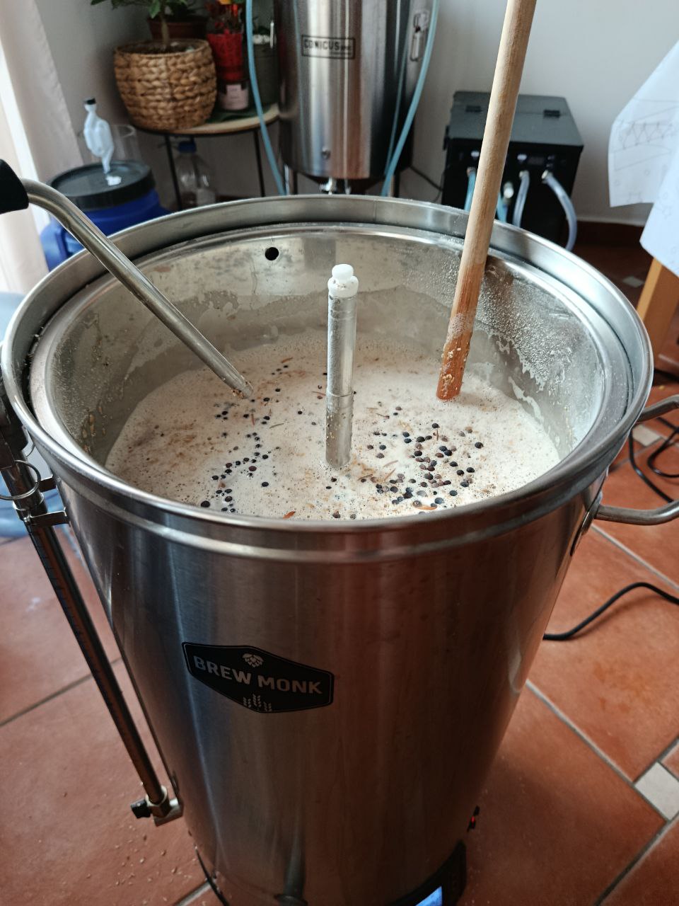 Затирание заняло примерно 6 часов по паузам. Кипячение отсутствует. Перелив в пластиковое ведро с неплотно закрытой крышкой, далее при достижении нужного значения кп и оставив достаточно большую сладость перенос в холодное место на недельку для осаждения дрожжей и последующий розлив в бутылки.