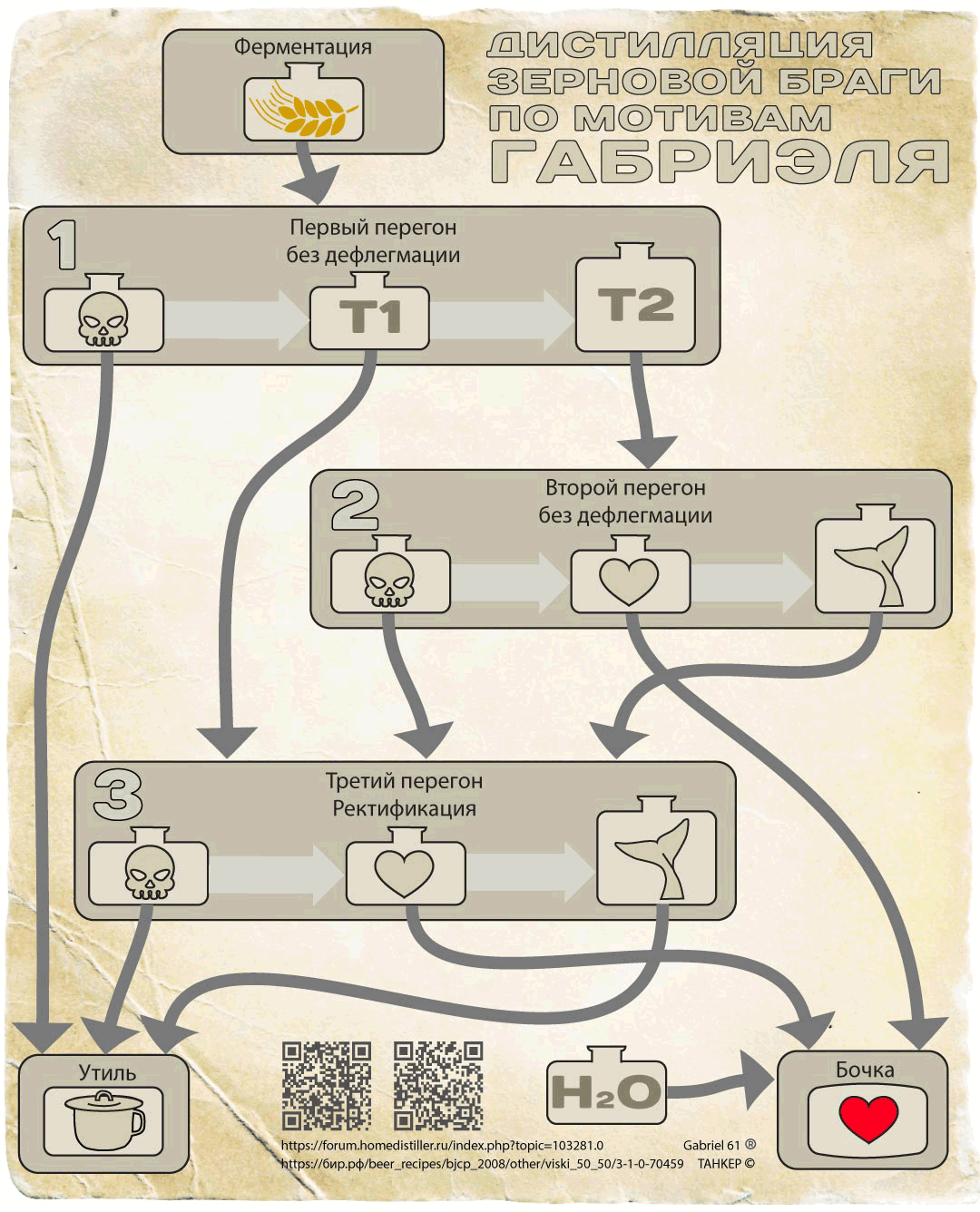 В итоге объединяем "сердца́" Т1 ✚ Т2 ➜ разбавляем ньюмейк водой до 60% ➜ купаж на созревание в бочку.