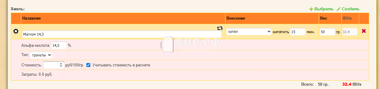 | Доброго дня. Впервые воспользовался мастером рецептов и обнаружил, что там горечь рассчитывается совсем не так, как в калькуляторе. Да, в мастере нет возможности указать способ охлаждения и метод расчета — в калькуляторе горечи я пробовал все варианты, совпадения нет вообще, самое близкое совпадение с разницей в 10%. Естественно, плотность и объем указаны идентичные. Верить, наверное, стоит калькулятору горечи, но тогда, может, прикрутить его к мастеру рецептов? А то там что-то совсем не то выходит.