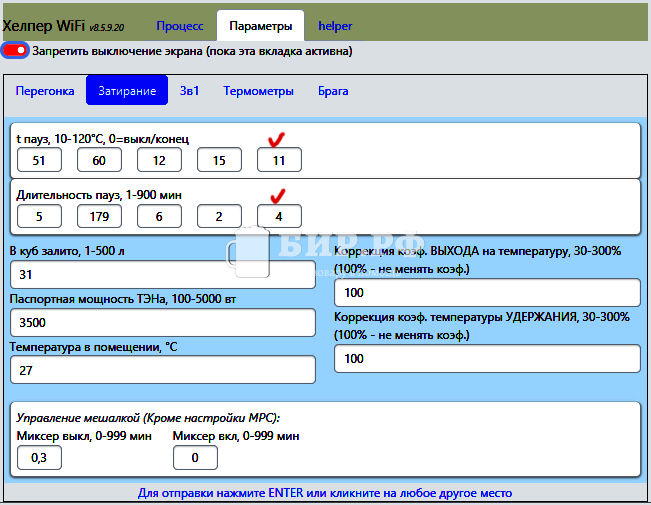Вышла версия автоматики Хелпер Wi-Fi v8.3.74 в которой радикально изменены процессы удержания температурных пауз при затирании солода.