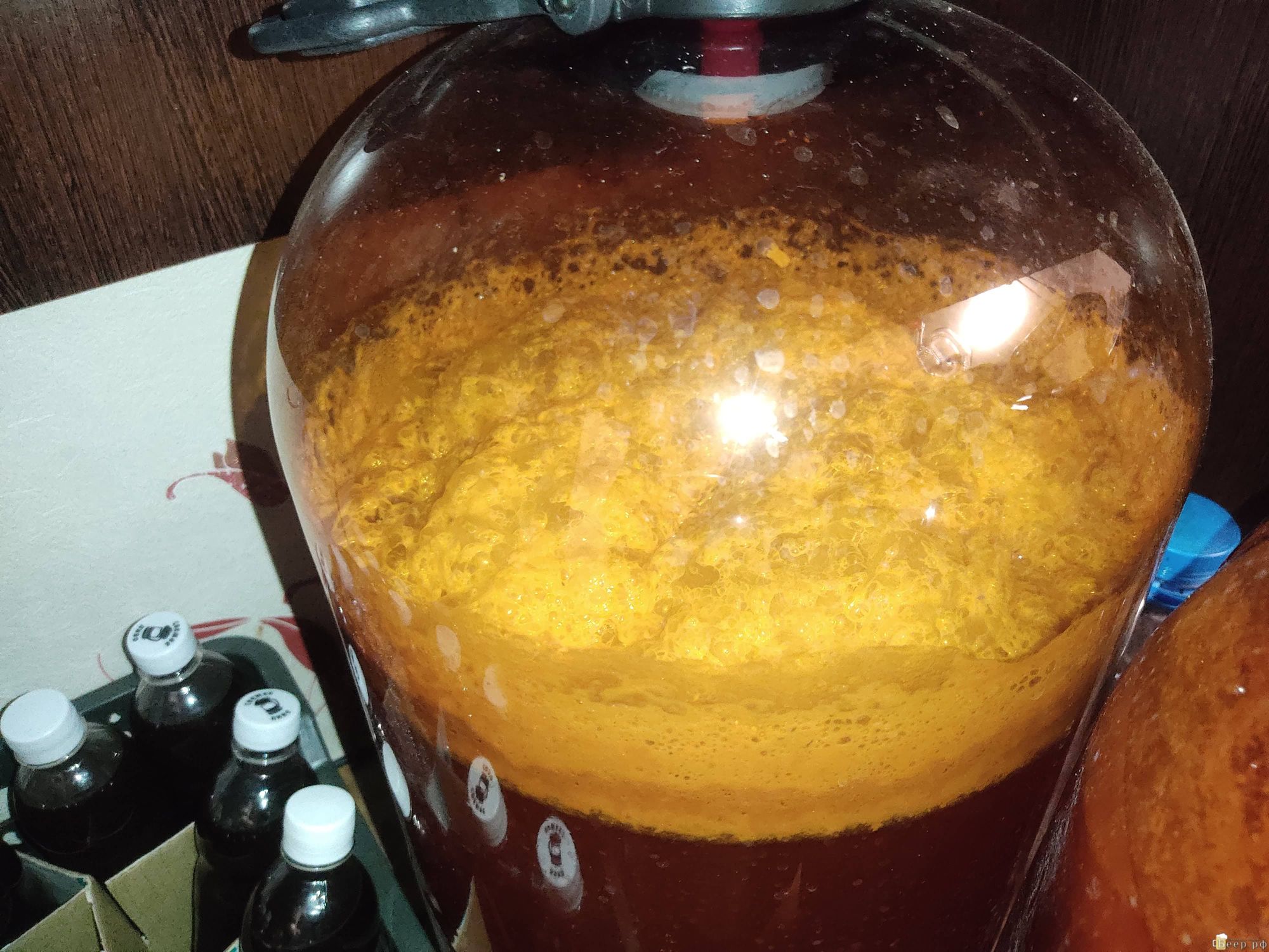 Через на 7 день брожения немного взболтал, пена изменила свой вид, но через 2 дня снова стала похожа на исходный вид. Движения в сусле как приброжении не видно, замер КП 2 дня назад перед взбалтывания и сегодня показывает 3,3, что равно расчётной КП.