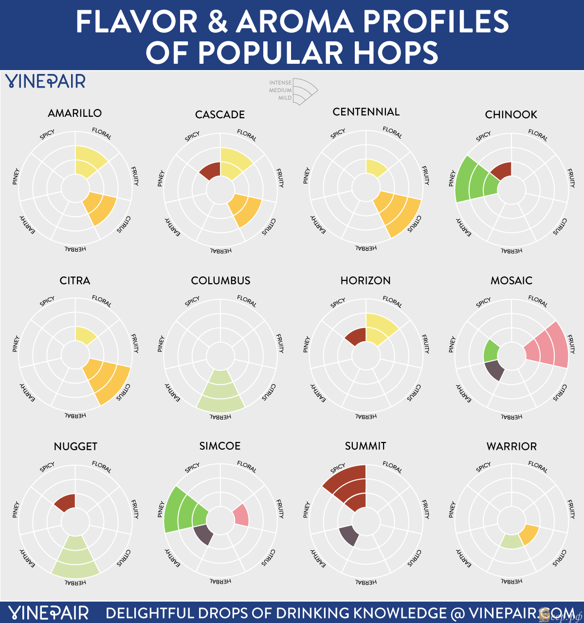 | При создании вкусового профиля охмеления мне удобно пользоваться подобными лепестковыми диаграммами: