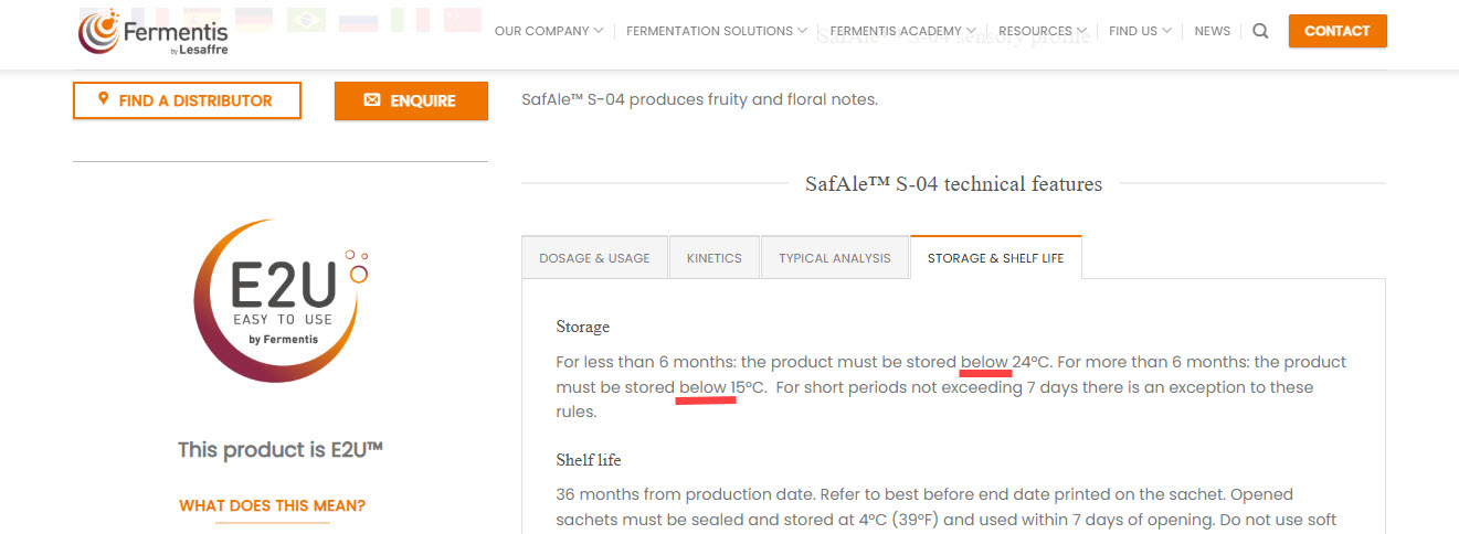 Это видимо на Ферментисах ? Глянул на их упаковку , действительно так написано , но это верхняя граница , почему-то отсутствует слово "ниже" перед величиной температур , которое присутствует в оригинальном описании на официальном сайте ("below") . У разных производителей пределы разные , у Лаллемандов например до 4-х , у Мангрувов до 10-ти или просто "хранить в холодильнике".
