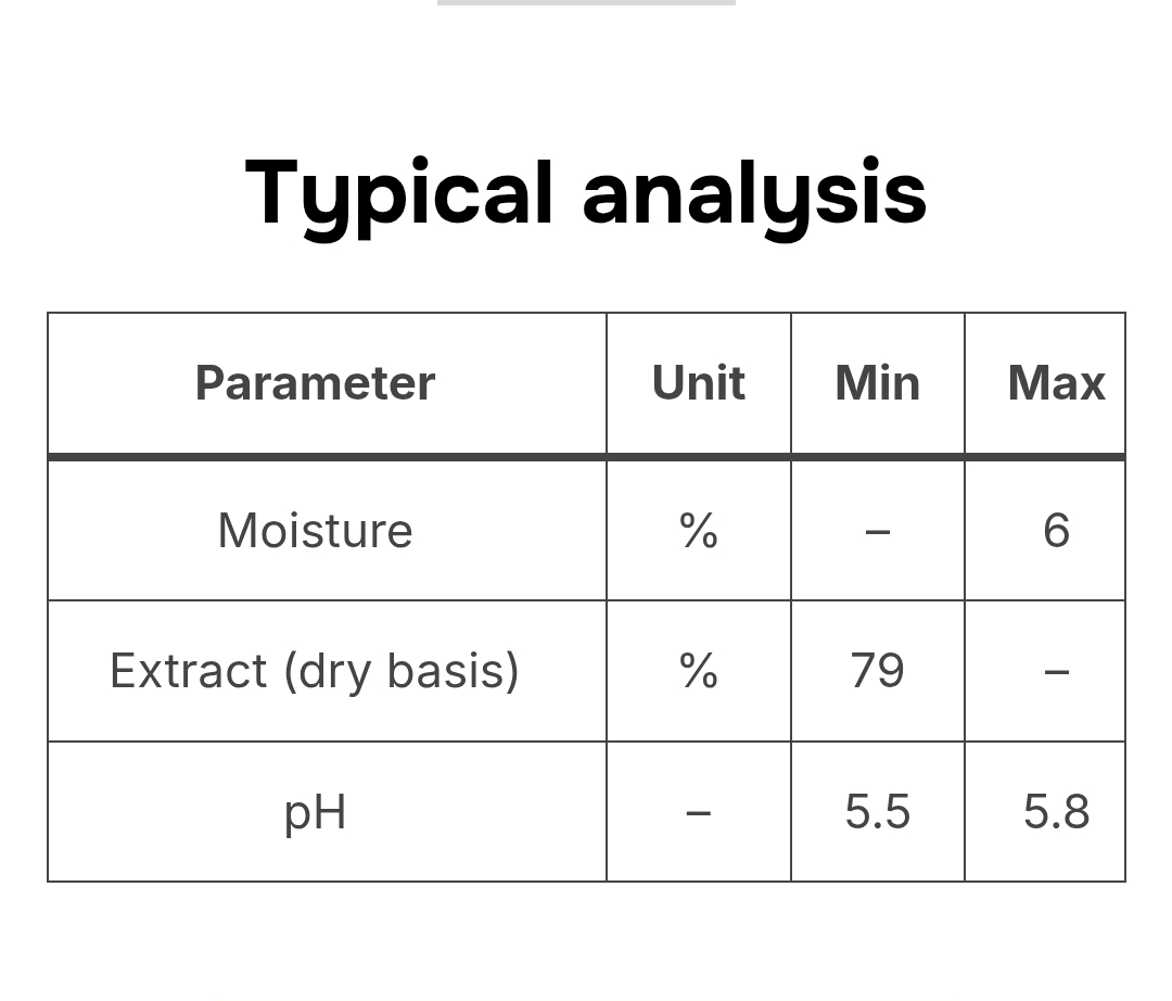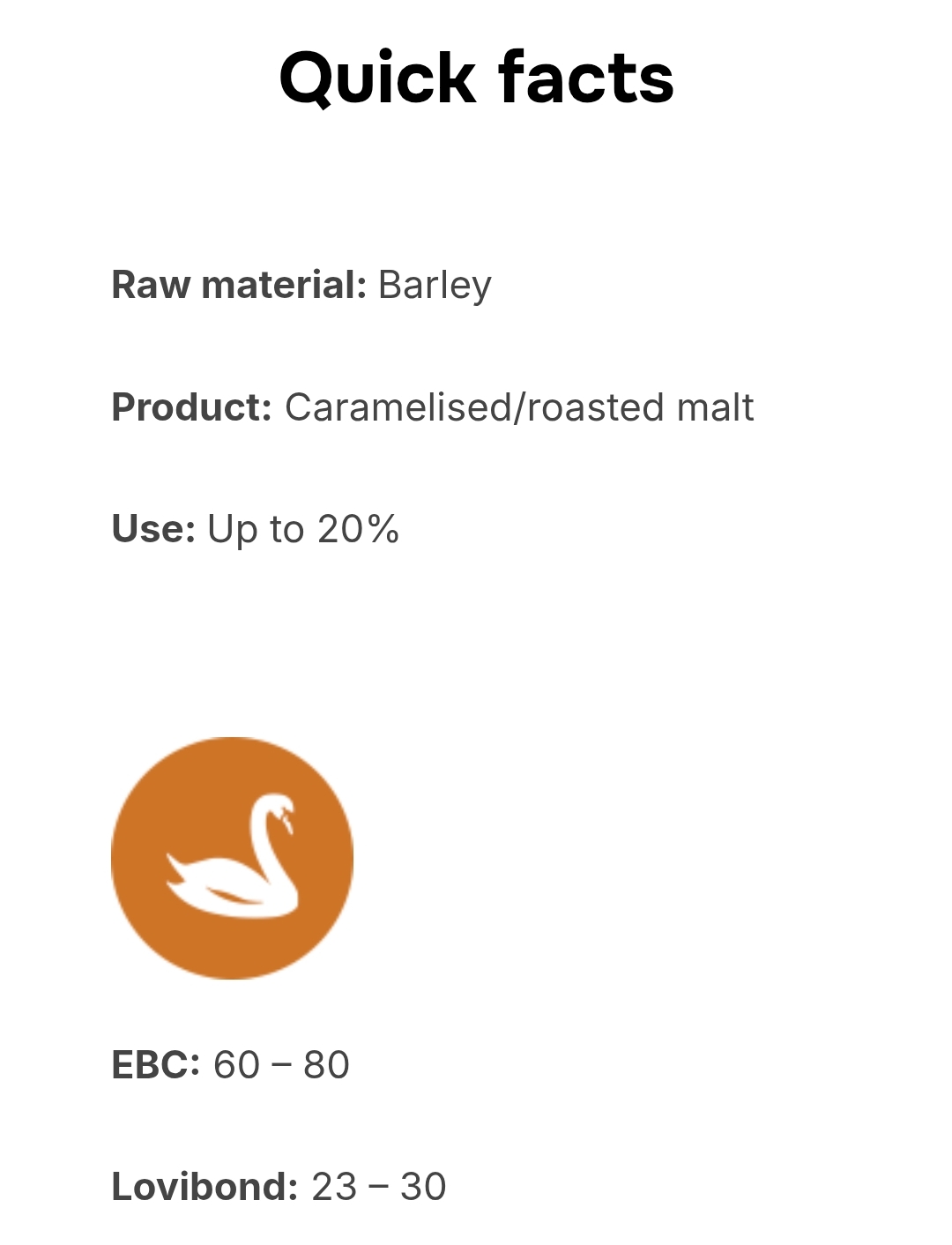 Цветность: 26.8 L°(70.056 EBC)   Экстракт на с.в.: 79 %   Закладка:  до 20 %