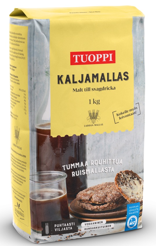 Tuoppi Kaljamallas производится из тёмного молотого ржаного солода, который придаёт домашнему пиву естественную сладость и насыщенный аромат тостов. Продукт не содержит сахара, соли и других добавок — только чистая ржаная крупа.