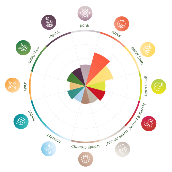 Ароматический профиль: В аромате Mandarina Bavaria доминируют мандарин и апельсин с нотками черной и красной смородины. Также присутствуют нотки розмарина и крыжовника.