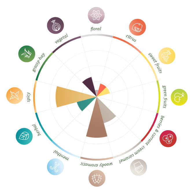 Ароматический профиль: древесные ароматы хмеля Spalter в сыром виде напоминают бобы тонка и дубовой бочки, с лёгкими сладкими нотками спелых бананов. В холодном настое на первый план выходят цветочные оттенки и аромат чёрного чая, что придаёт этому сорту характерный вкусовой профиль.