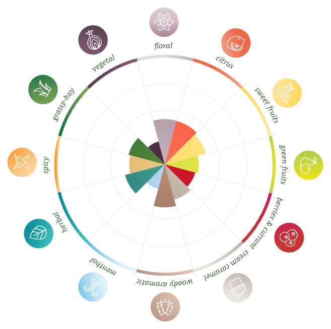 Ароматический профиль: Hallertauer Tradition демонстрирует в основном цветочные, цитрусовые и лаймовые ароматы в сочетании с древесными, растительными и нотами зеленой травы.