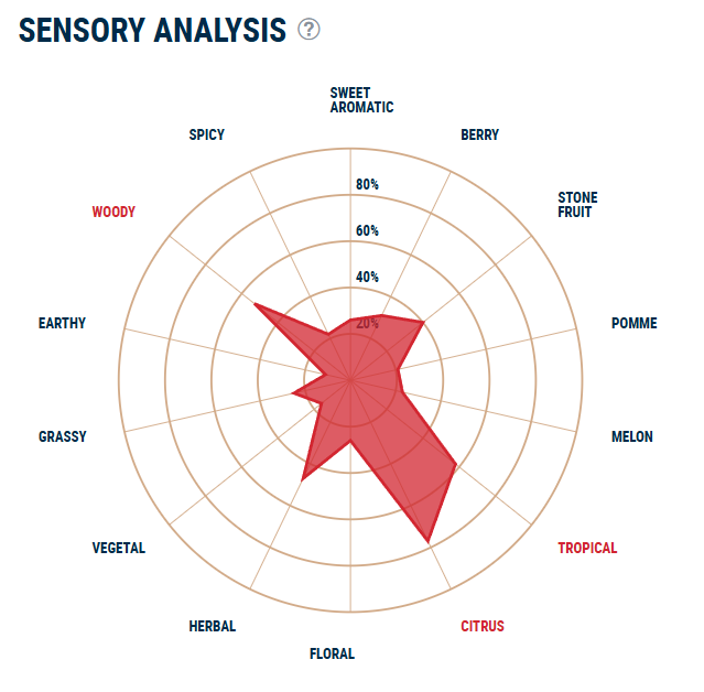 Ароматический профиль: цитрусовый, косточковый, тропический, древесный.