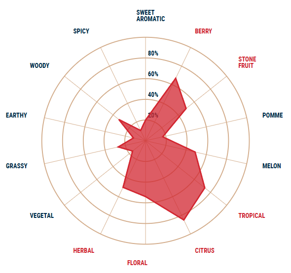 Каскад содержит умеренное количество альфа-кислоты в диапазоне 4,5% - 7%. А его реальная сила в пивоварении - это аромат. Это, несомненно, связано с высоким содержанием мирцена. Фарнезен, который используется в парфюмерной и пищевой промышленности, также составляет довольно высокое значение.