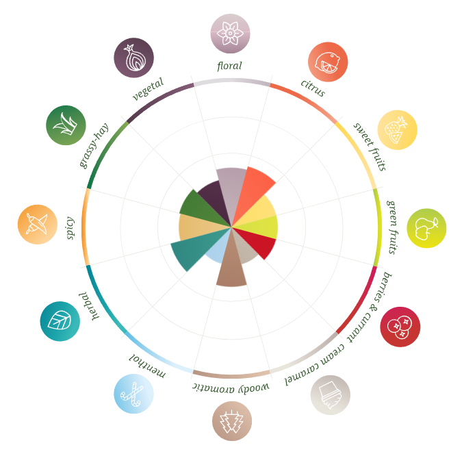 Ароматический профиль: этот сорт характеризуется пряно-древесными нотами мирры, гвоздики и сирени в сочетании с красной смородиной и лимоном.