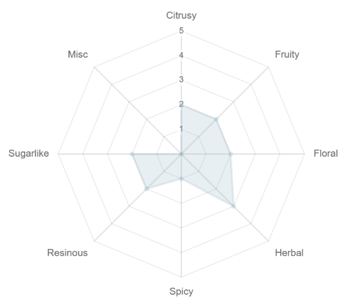 Ароматический профиль: травянистый, пряный, лайм, сосна, мята.