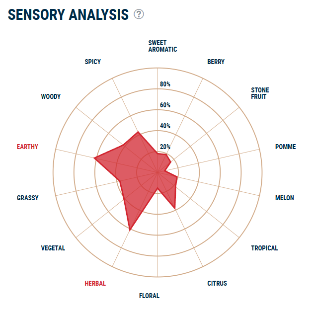Ароматический профиль: цитрусовый, землистый, травяной, пряный, древесный.