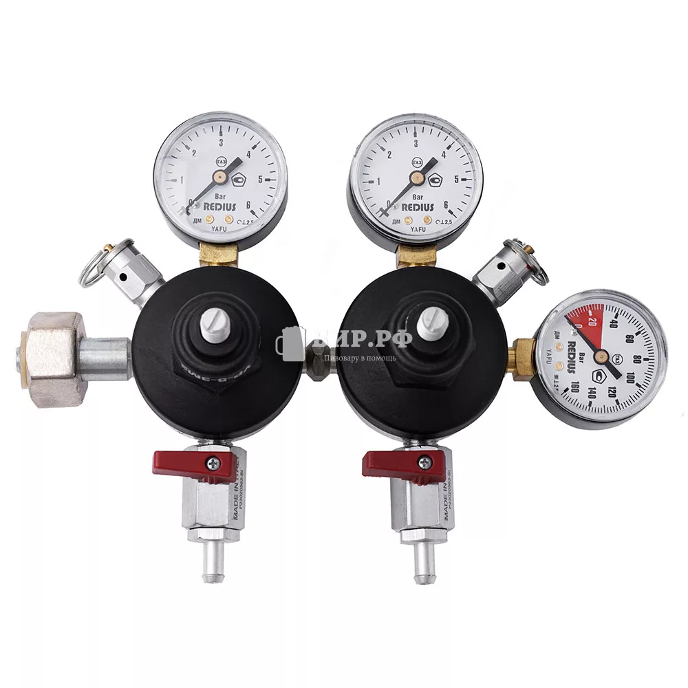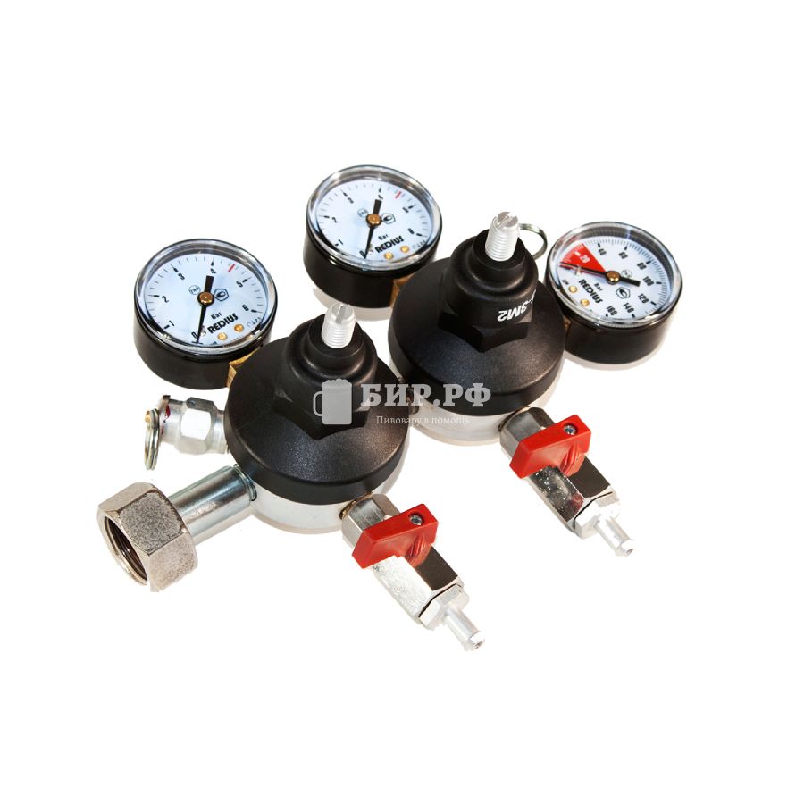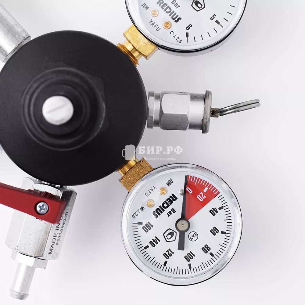 В баллоне СО₂ давление слишком высокое (при температуре 25°С примерно 55 атмосфер), его нужно понизить до безопасного рабочего давления. С помощью двухкорпусного редуктора можно задавать два разных давления одновременно на два потока. К примеру, для ускоренной карбонизации напитка задается более высокое давление на первом от выхода из баллона корпусе, а для розлива уже охлажденного напитка давление еще больше снижается на втором корпусе. Также разные стили пива могут требовать разную степень карбонизации и соответственно разное давление.