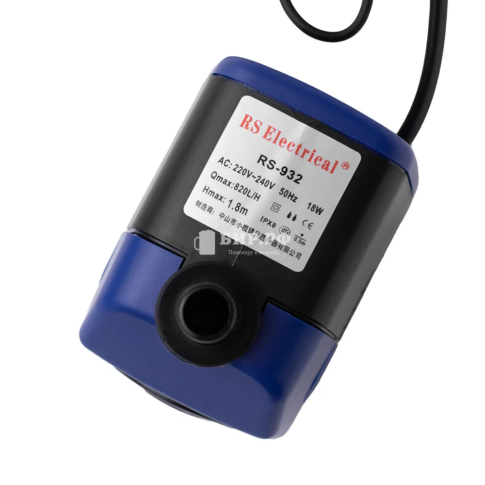 Циркуляционный насос RS-932 (погружной) мощностью 18 Вт способен перекачивать до 820 литров в час и предназначен для использования в дистилляторах, аквариумах и фонтанах.