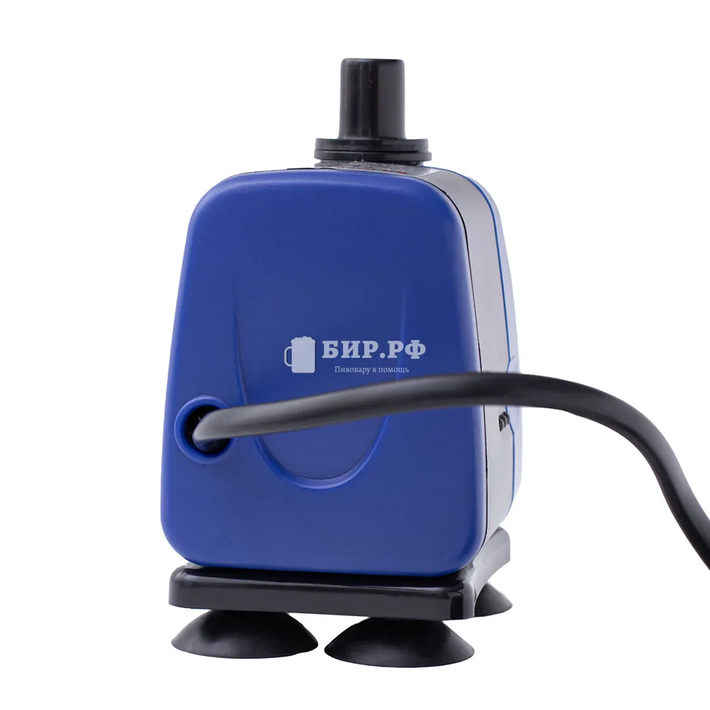 Этот насос обеспечивает независимое охлаждение самогонного аппарата или чиллера для охлаждения сусла без подключения к водопроводу. Он работает на глубине до 1,8 метра. С его помощью можно легко перекачивать напитки или брагу между емкостями и отделять вино от осадка. Важно, чтобы насос находился в полностью погружённом положении без отключения питания на продолжительные периоды; небольшое нагревание корпуса допускается. Насос крепится к внутренней стенке резервуара с помощью присосок, прикрепленных к кронштейну.