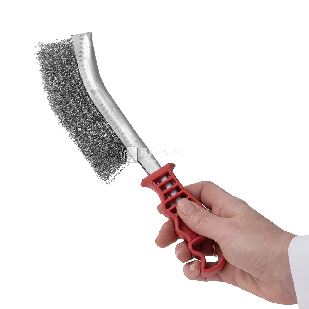 Стальная кордщетка предназначена для ручной очистки различных поверхностей, включая снятие краски, ржавчины и налета. Конструкция щетки включает основу, на которой расположены проволочные щетины из нержавеющей стали 304, а рукоятка выполнена в удобной эргономичной форме.