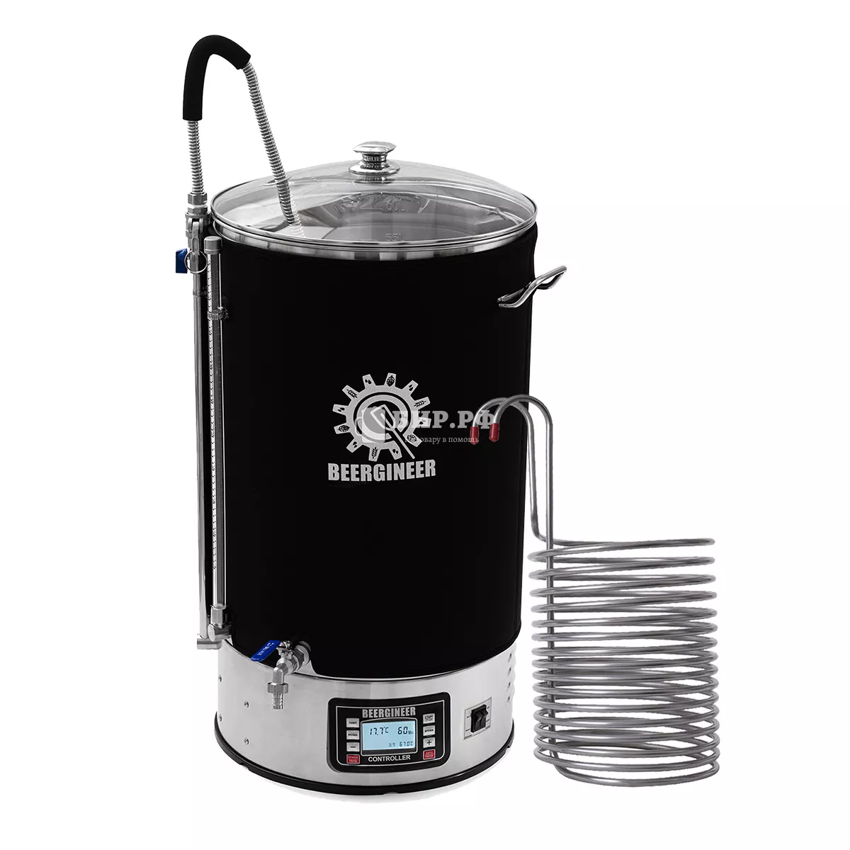 Благодаря интуитивному блоку управления, даже начинающий пивовар сможет быстро освоить устройство, а функция памяти рецептов позволяет варить пиво всего в два клика. Корпус из нержавеющей стали марки 304 AISI добавляет прочности и надежности, а прозрачная крышка облегчает визуальный контроль процесса.
