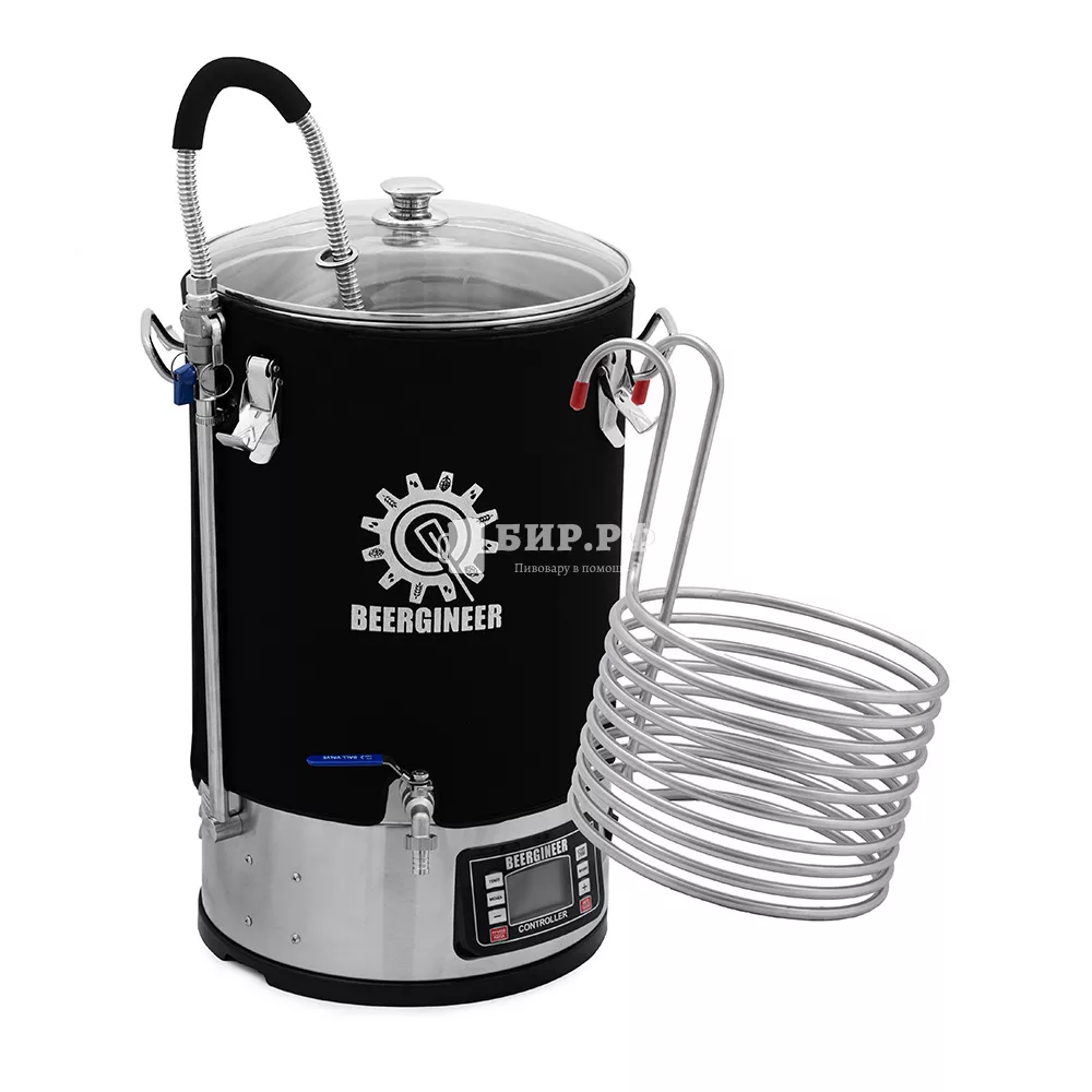 Благодаря интуитивному блоку управления, даже начинающий пивовар сможет быстро освоить устройство, а функция памяти рецептов позволяет варить пиво всего в два клика. Корпус из нержавеющей стали марки 304 AISI добавляет прочности и надежности, а прозрачная крышка облегчает визуальный контроль процесса.