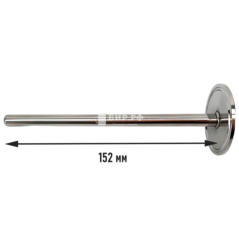 Термогильза используется для установки датчика температуры (например, от электронного термометра или контроллера) в ферментер (ЦКТ), которая монтируется в порт с кламповым соединением размером 1,5 дюйма.