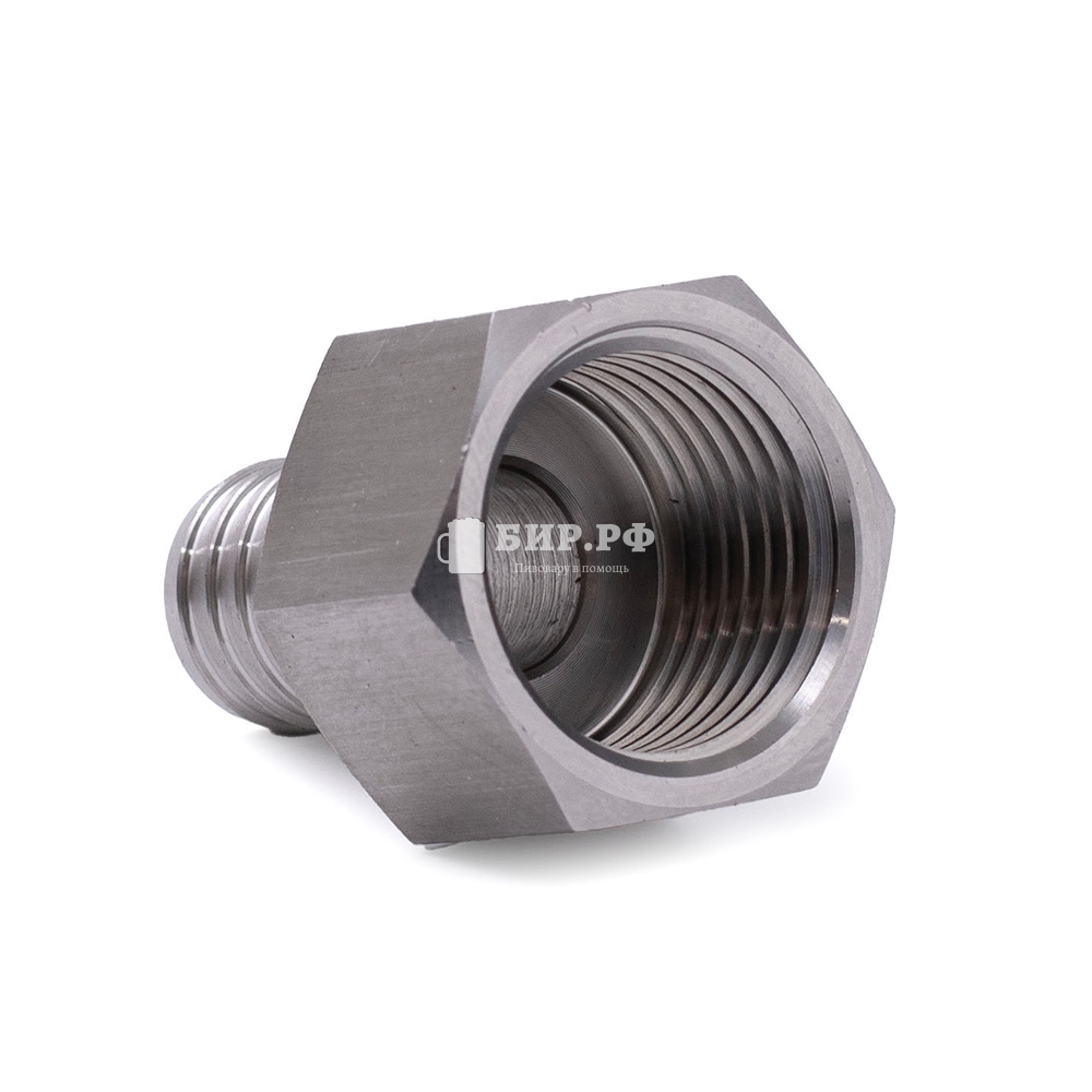 Данный адаптер представляет собой практичное и безопасное средство для объединения различных элементов системы, когда необходимо осуществить переход между разными типами резьбовых соединений. Благодаря изготовлению из пищевой нержавеющей стали, он также отличается высоким уровнем гигиеничности и продолжительным сроком службы, что особенно важно при работе с продуктами питания.