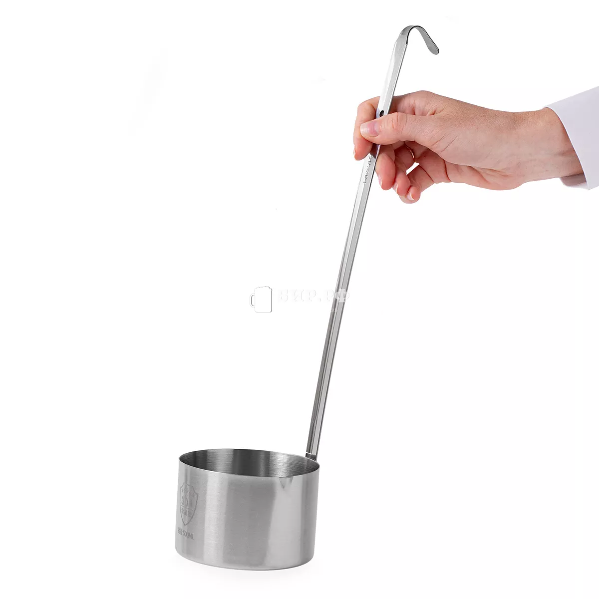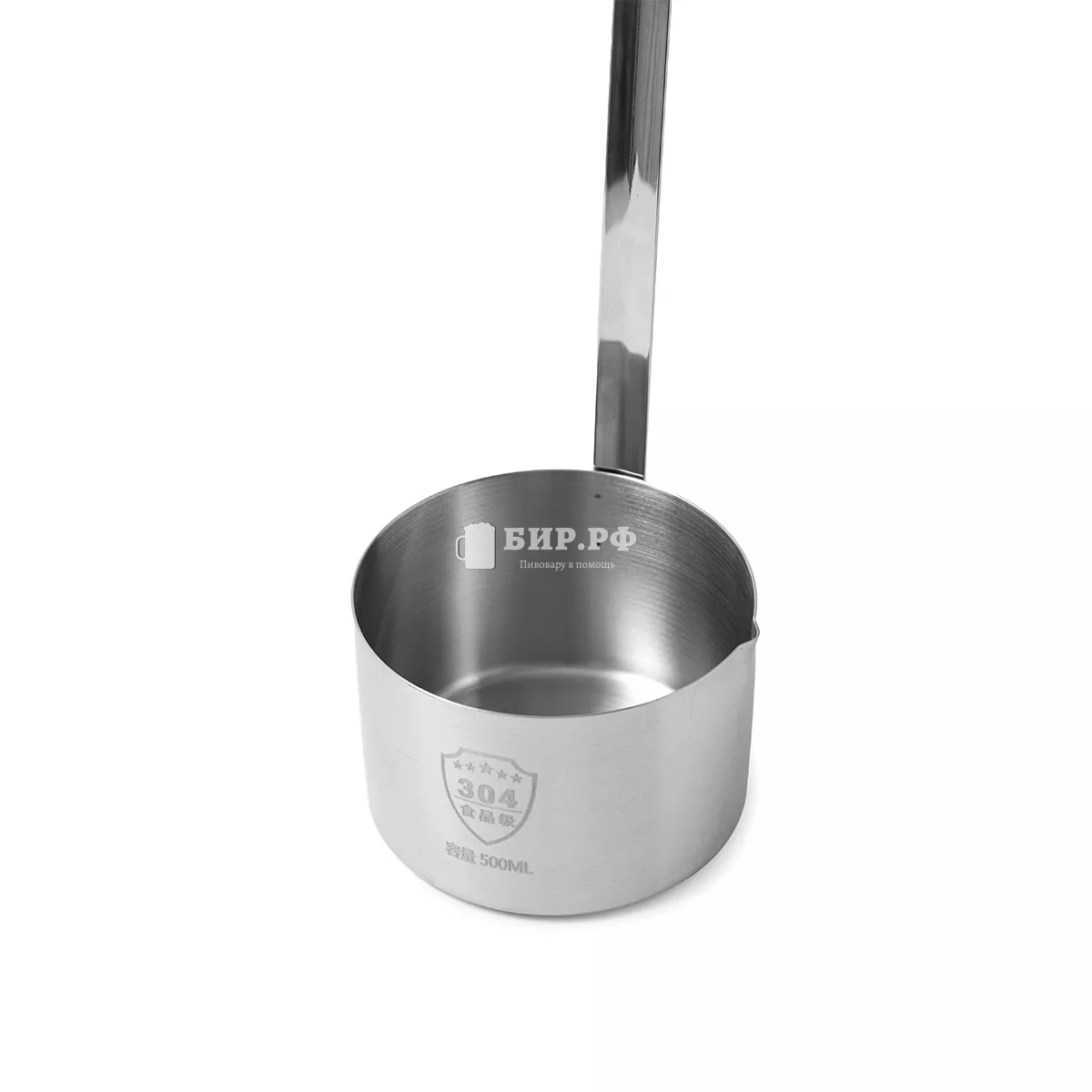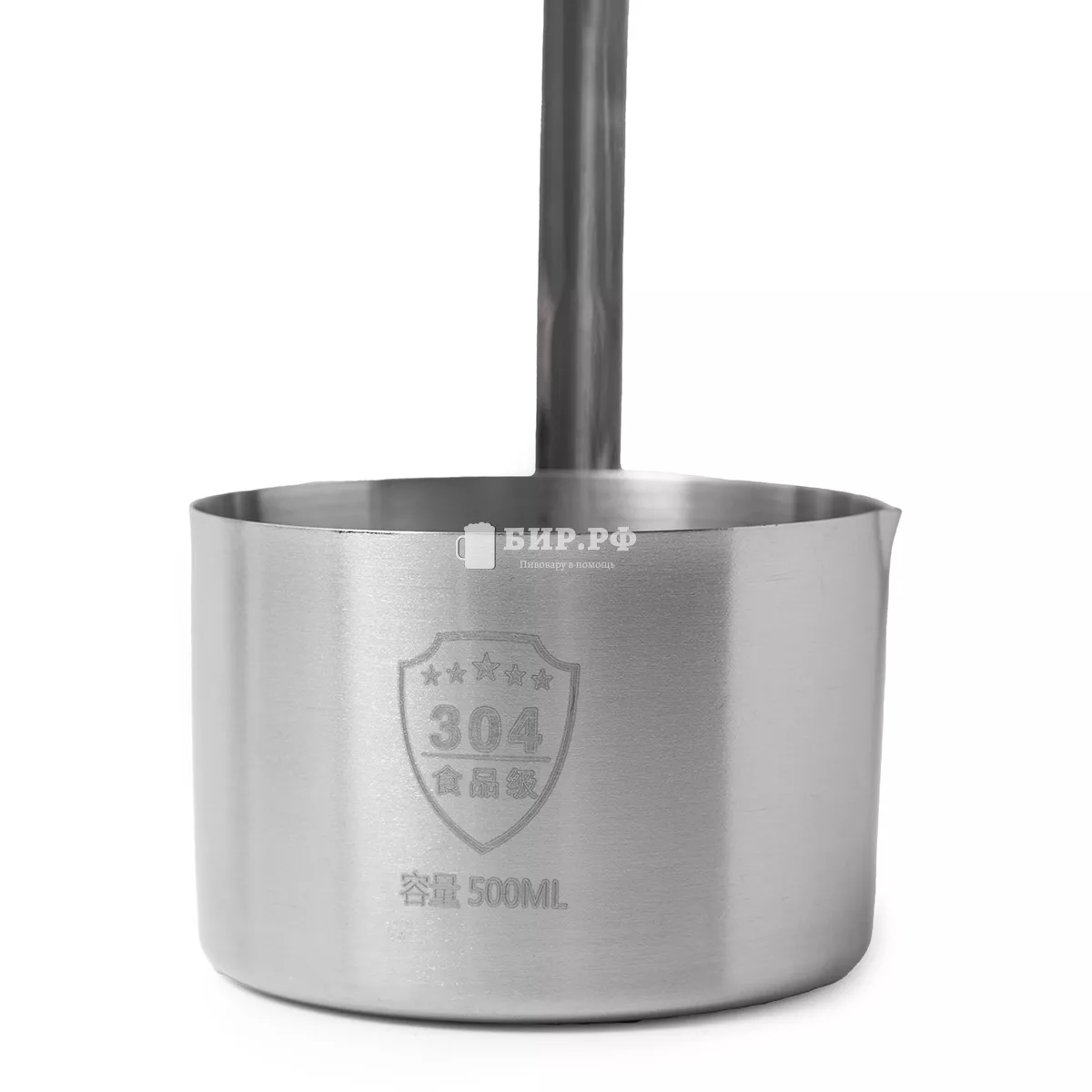 Этот полулитровый черпак, изготовленный из нержавеющей стали, специально разработан для взятия проб и удобной переливки жидкостей. Конструкция включает сливной желобок с загнутым краем, обеспечивающий ровный и аккуратный слив, предотвращающий образование капель.