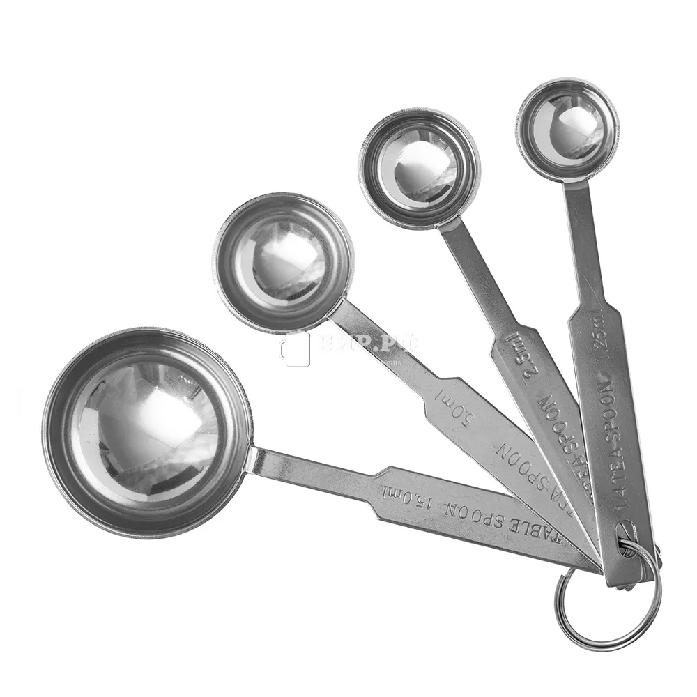 Этот комплект мерных ложек предназначен для точного измерения как сыпучих, так и жидких продуктов, обеспечивая строгое следование рецепту.