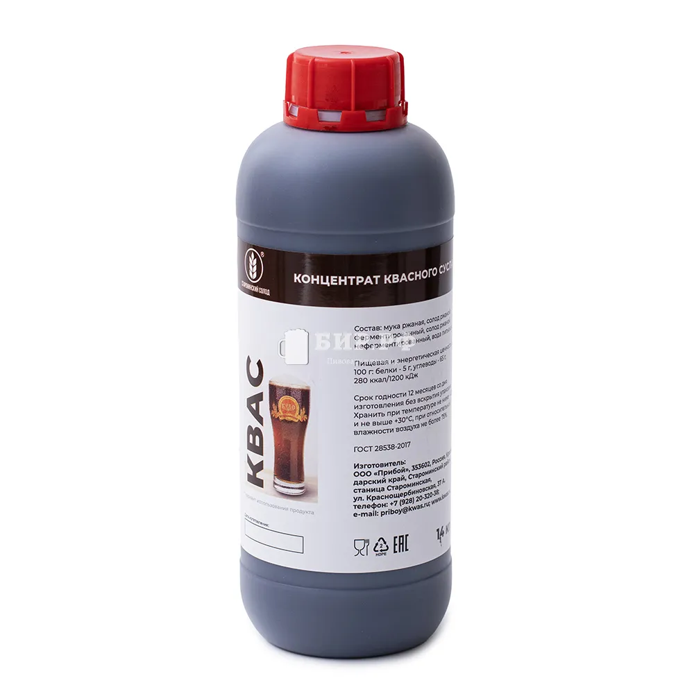 Концентрат квасного сусла / ККС имеет непрозрачную, вязкую и густую консистенцию, состоящую из ржаного ферментированного и ячменного тёмного солода и воды. Обладает чистым солодово-карамельный вкусом, с легкой горчинкой и характерным ржаным ароматом.