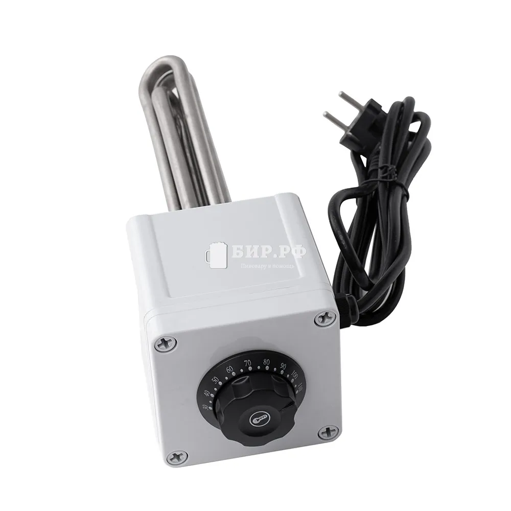 Данное оборудование представляет собой компактный нагревательный элемент мощностью 2,5 кВт, оснащённый терморегулятором и предназначенный для монтажа в ёмкость через соединение типа кламп диаметром 2 дюйма. Его основная функция — нагрев жидкости и автоматическое поддержание установленного температурного режима в пределах от 30 до 110 °C.