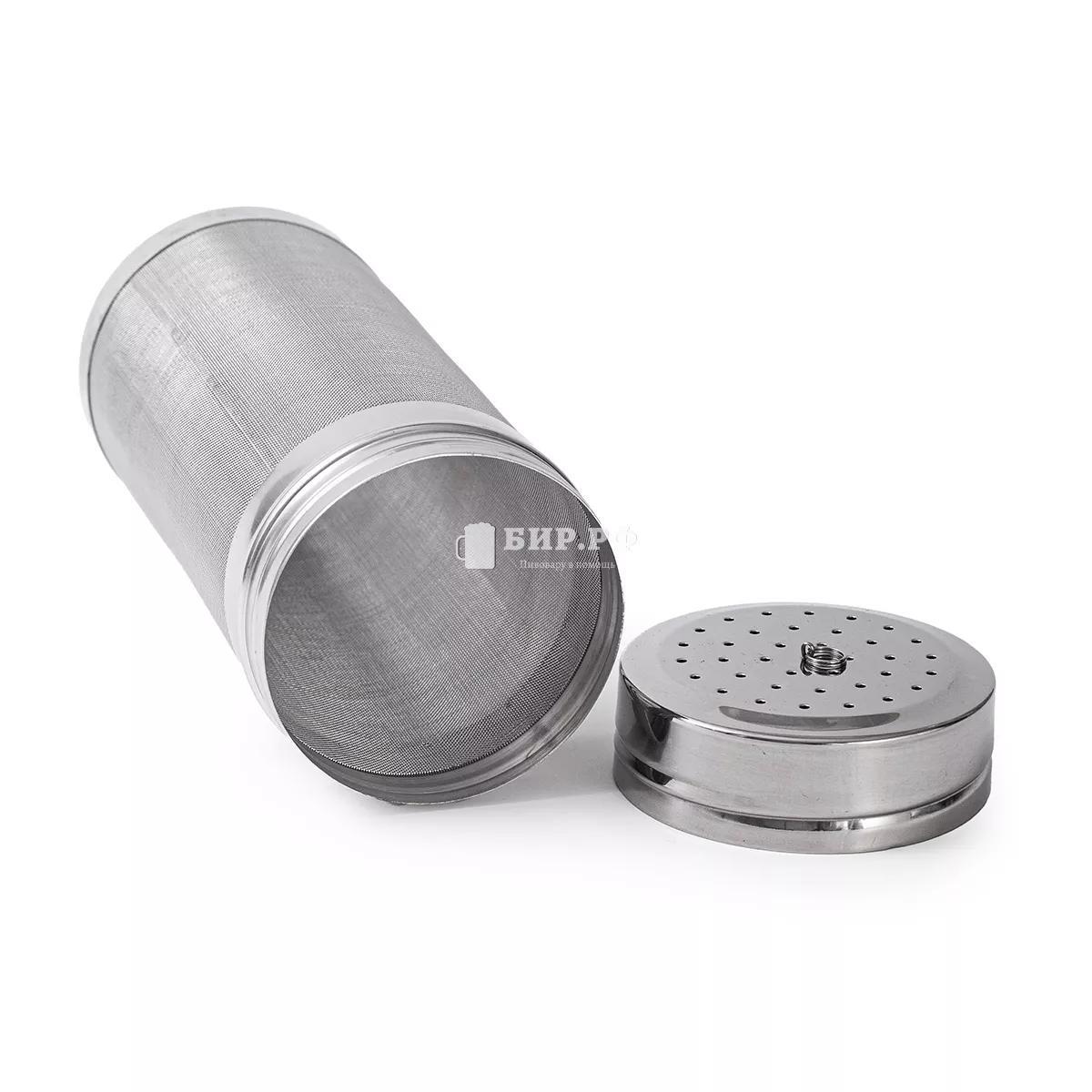 Данный фильтр сделан специально для сухого охмеления. Насыпаемый внутрь хмель будет иметь хороший контакт с суслом, а при розливе останется в фильтре, что значительно сэкономит время и облегчит процесс фильтрации при розливе пива.