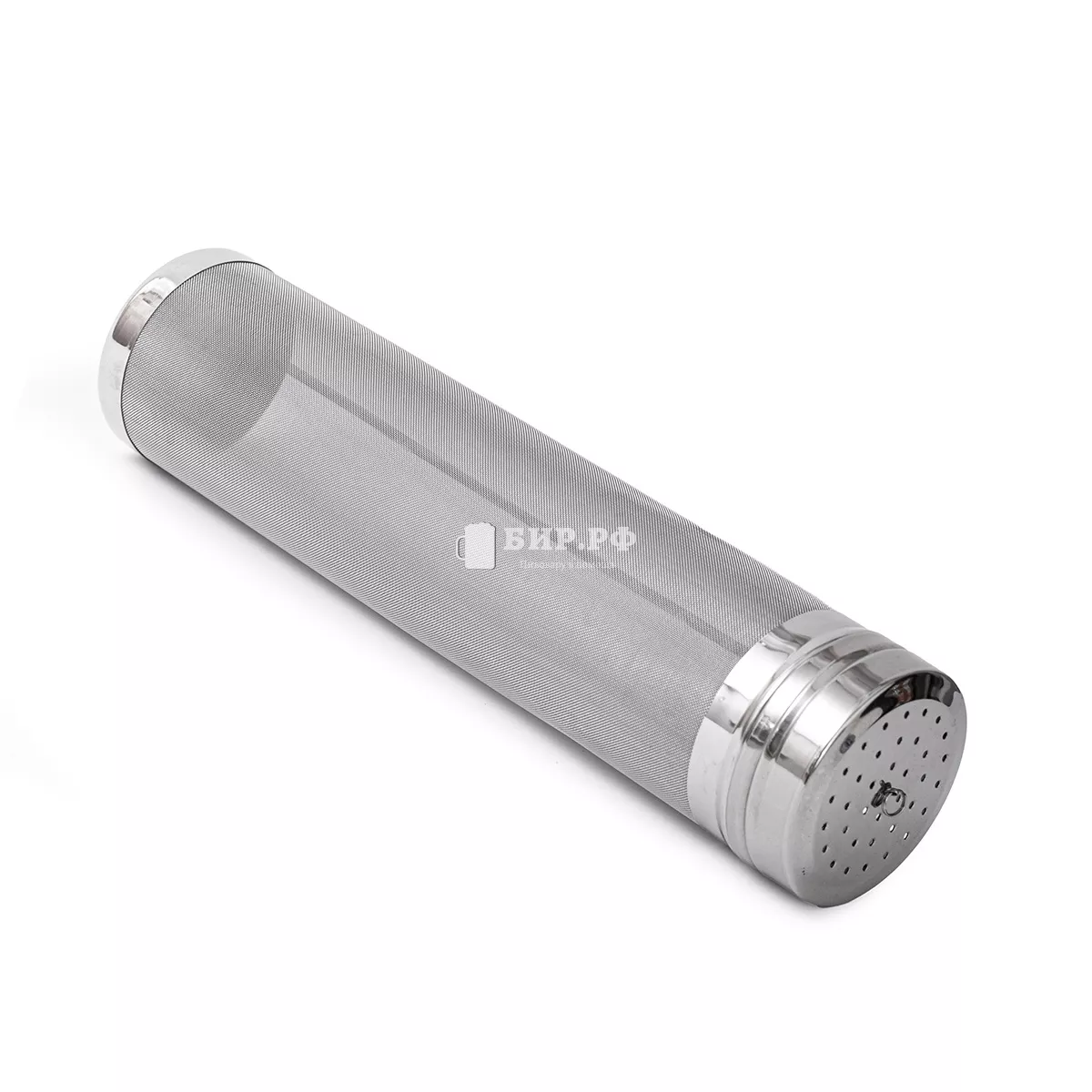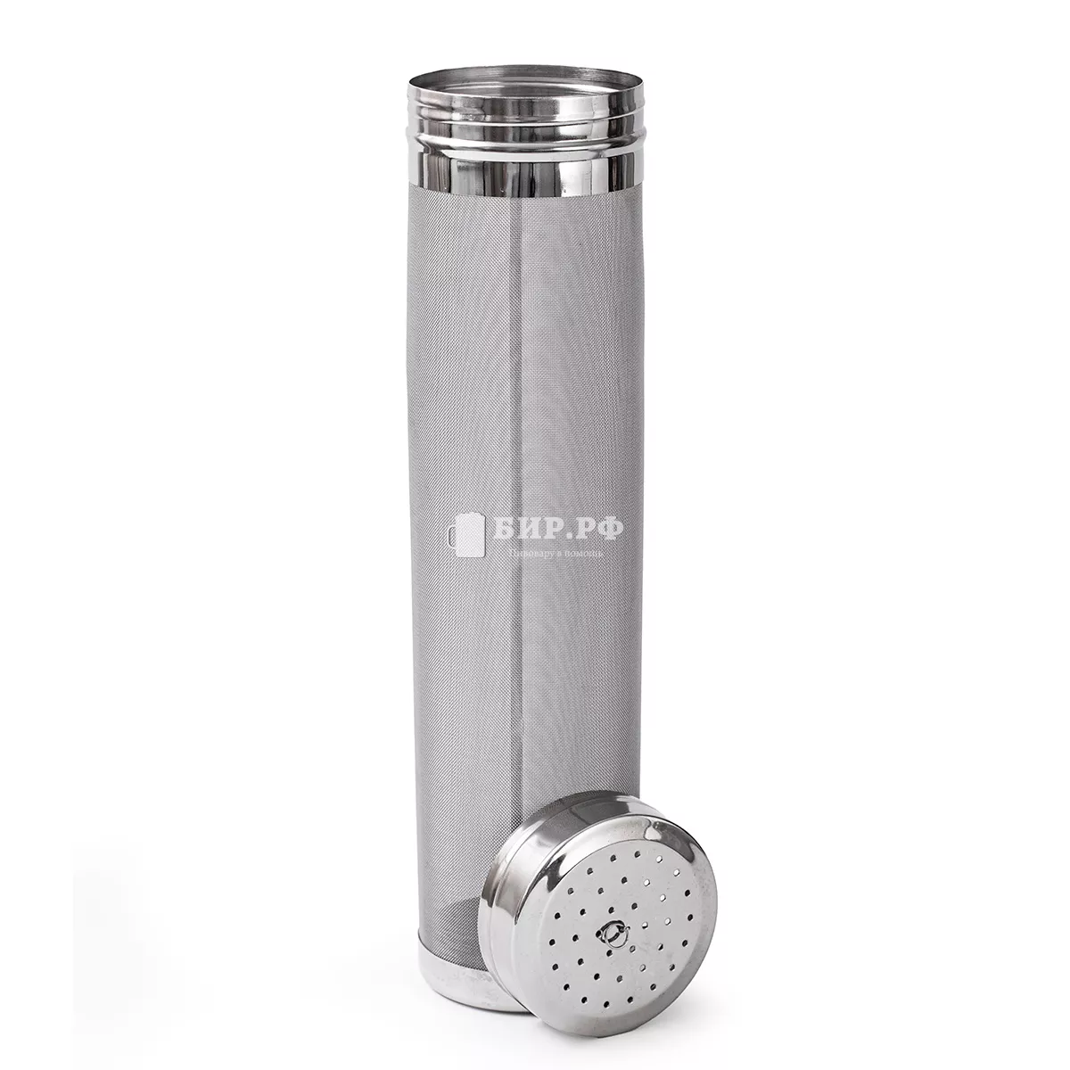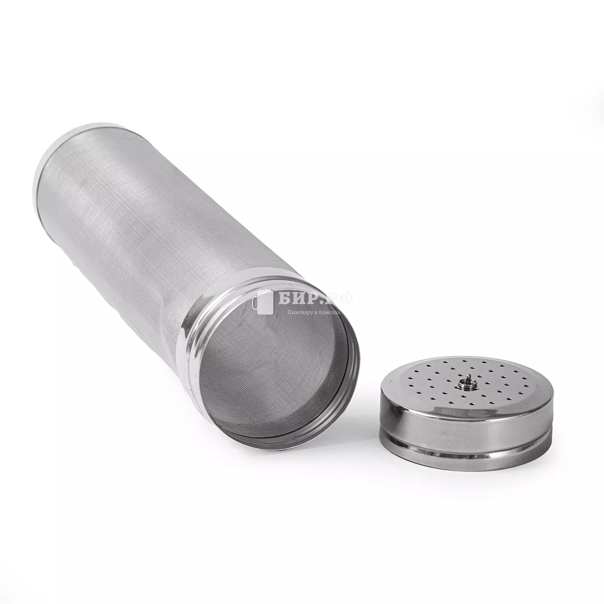 Данный фильтр сделан специально для сухого охмеления. Насыпаемый внутрь хмель будет иметь хороший контакт с суслом, а при розливе останется в фильтре, что значительно сэкономит время и облегчит процесс фильтрации при розливе пива.